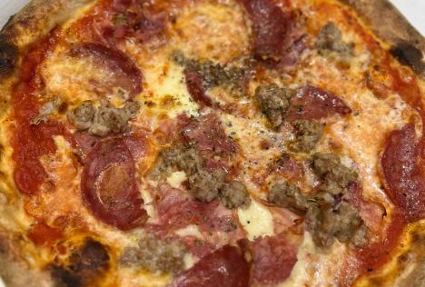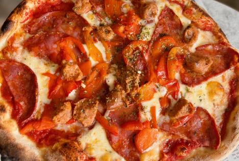 Tomates, mozzarella, salami piquant, salami Nduja(fondant et piquant), salami non-piquant