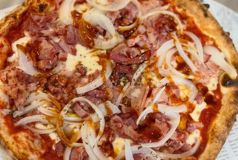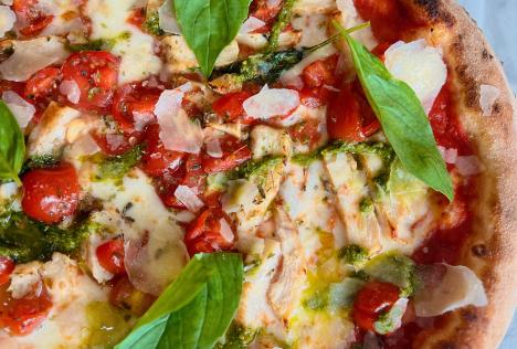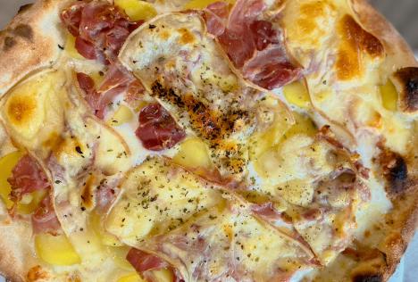 Tomates, mozzarella, oignons, roquette, jambon San Daniele, copeaux de parmesan